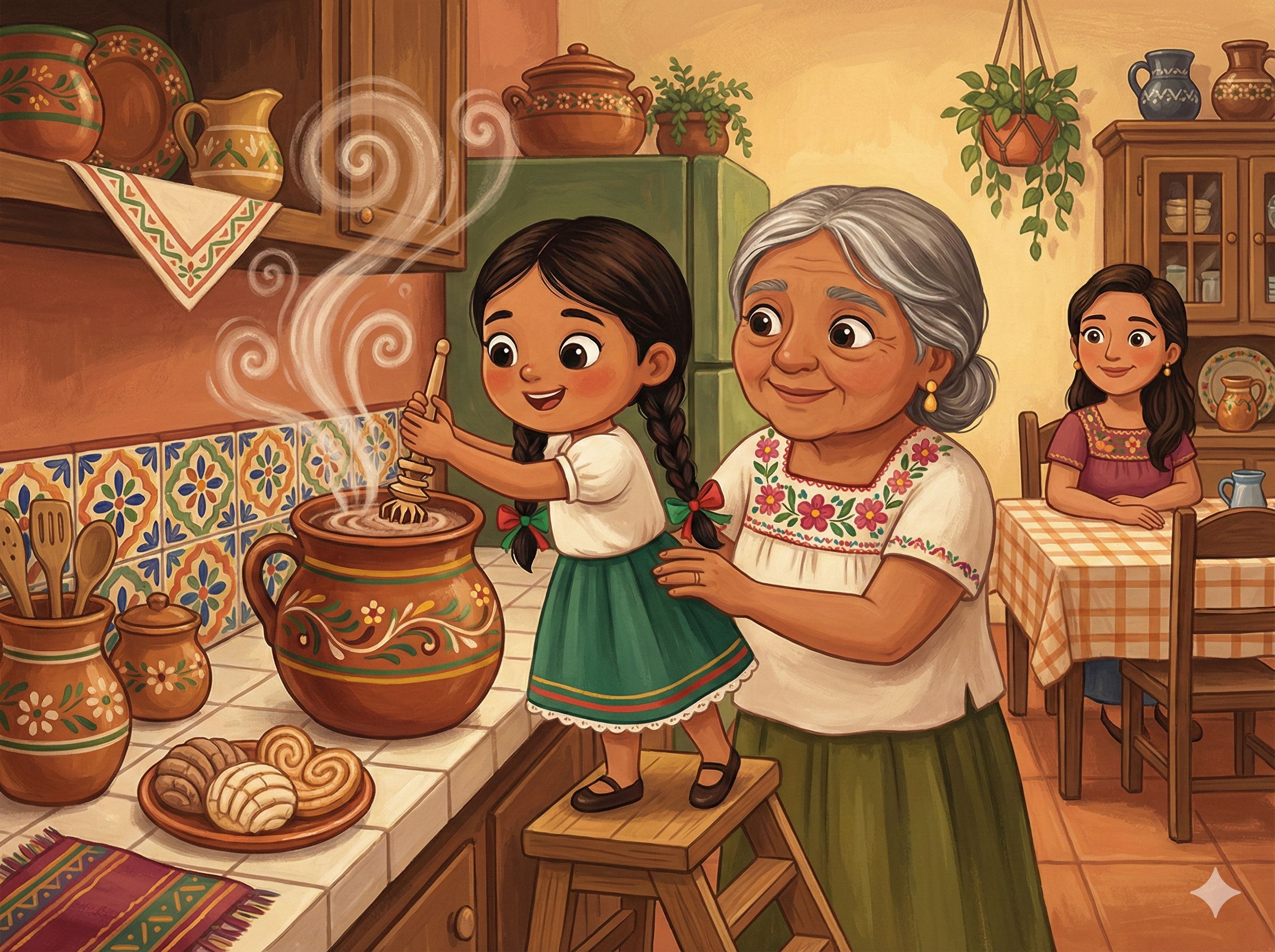 Versión ilustrada para El chocolate de abuela. Tarjetas con imágenes del cuento para ordenar los eventos.